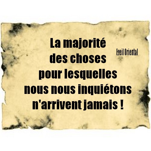 La majorité des choses pour lesquelles nous nous inquiétons n’arrive jamais ! Eveil Oriental