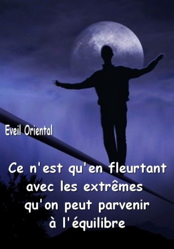 équilibre Ce n’est qu’en fleurtant avec les extrêmes qu’on peut parvenir à l’équilibre – Eveil Oriental – Partager :TweetPartager sur TumblrPlus Envoyer un lien par e-mail à un ami(ouvre dans une nouvelle fenêtre) E-mail Imprimer(ouvre dans une nouvelle fenêtre) Imprimer Partager sur Reddit(ouvre dans une nouvelle fenêtre) Reddit J’aime chargement…