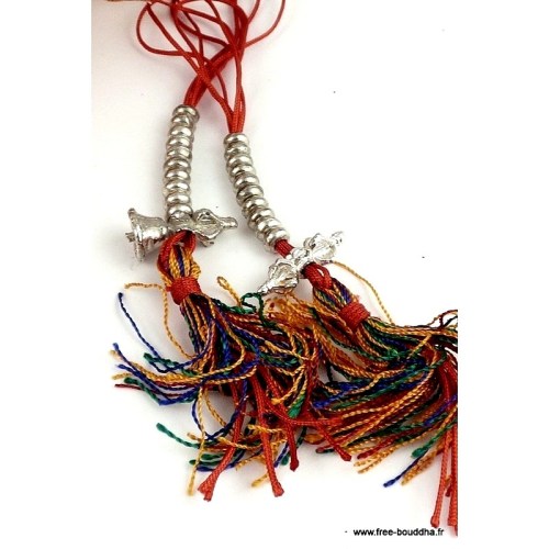 Le compteur de mala est composé de 20 perles, 10 perles sur chaque fil qui se termine par un dorje et une cloche, symbole de sagesse et d’invulnérabilité.