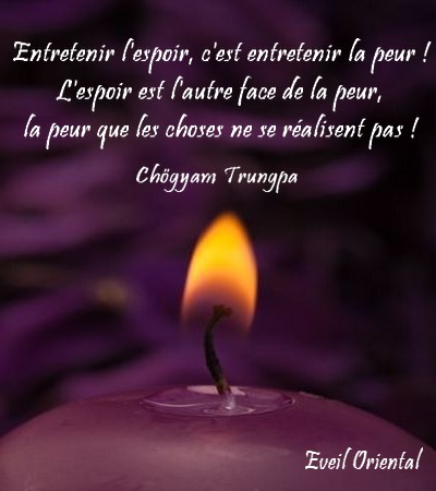 Dans son livre « Regard sur l’abhidharma », Chögyam Trungpa (maître réalisé de la lignée de la folle sagesse) explique que le désespoir est une autre facette de l’égo, l’art de saisir à nouveau l’espace en nous convaincant que nous ne saisissons rien…Tant que nous ne sommes pas éveillés, tout est Ego 😉